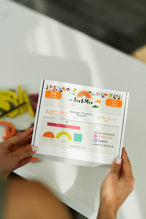 Atskleiskite kūrybiškumą su Tix&Mix Rings&Blocks rinkiniu! Originalūs ir unikalūs Montessori stiliaus mediniais magnetukai. Šis kruopščiai ...